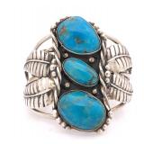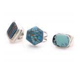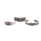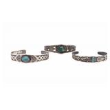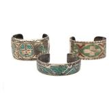 - 2610 LOT OF 3 NATIVE AMERICAN STERLING SILVER TURQUOISE CUFFS