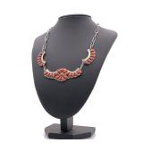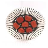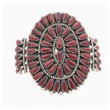 - 2571 VINTAGE PAUL & NANCY LEEKITY ZUNI STERLING SILVER CORAL NECKLACE