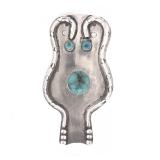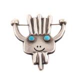 - 2056 JERRY COWBOY NAVAJO STERLING SILVER TURQUOISE SANDCAST BROOCH