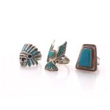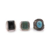- 2600 LOT OF 3 NATIVE AMERICAN STERLING SILVER TURQUOISE & JET RINGS