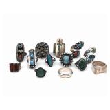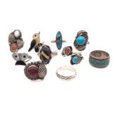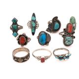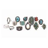 - 2629 LOT OF 13 ASSORTED NATIVE AMERICAN SOUTHWEST STERLING SILVER GEMSTONE RINGS