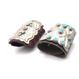 - 2034 VINTAGE SOUTHWESTERN STERLING SILVER TWO ROW DOT TURQUOISE CUFF