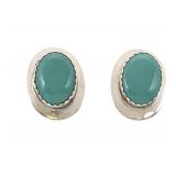 - 2588 M BENNETT NAVAJO STERLING SILVER TURQUOISE BRACELET AND EARRINGS