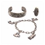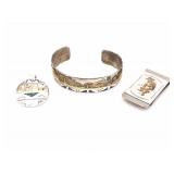 - 2626 LOT OF 3 HOPI CRAFTS STERLING SILVER OVERLAY CUFF BRACELET & RING