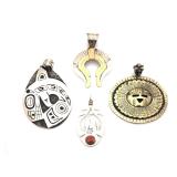 - 2551 LOT OF 4 ARMAND AMERICAN HORSE LAKOTA NICKEL SILVER PENDANTS