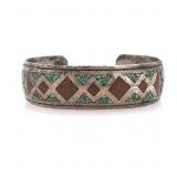 - 2555 EARLY NATIVE AMERICAN STERLING SILVER CHIP INLAY CUFF