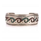 - 2552 STANLEY BAIN NAVAJO STERLING SILVER INLAY CUFF