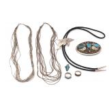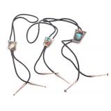 - 2561 LOT OF 3 NATIVE AMERICAN STERLING SILVER TURQUOISE AND CORAL BOLO TIE