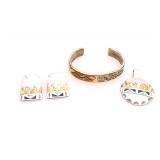 - 2615 LOT OF 3 HOPI NAVAJO STERLING SILVER OVERLAY JEWELRY