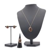 - 2565 4PC SIGNED 14K YELLOW GOLD BLACK OPAL SOUTHWESTERN JEWELRY SUITE