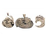 - 2566 LOT OF 3 ARMAND AMERICAN HORSE LAKOTA TRIBE NICKEL SILVER PENDANT