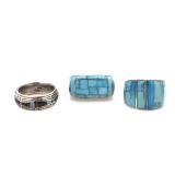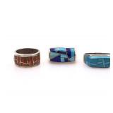 - 2585 LOT OF 3 GL MILLER SOUTHWESTERN STERLING SILVER INLAY RINGS