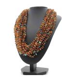 - 2586 NATIVE AMERICAN 13 STRAND AMBER & TURQUOISE NECKLACE