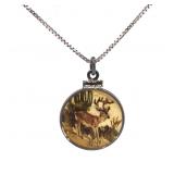 - 2592 WOW! VINTAGE ERNEST BEACH SMITH STERLING SILVER HAND PAINTED MOTHER OF PEARL MULE DEER PENDANT NECKLACE
