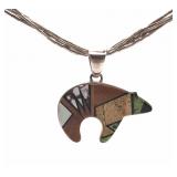 - 2599 CALVIN BEGAY TOUCH OF SANTA FE STERLING SILVER INLAY BEAR PENDANT NECKLACE
