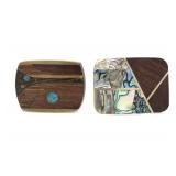- 2602 LOT OF 2 SOUTHWESTERN MODERNIST BRONZE & NICKEL SILVER BELT BUCKLES WITH WOOD, TURQUOISE, AND ABALONE INLAY