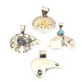 - 2605 LOT OF 4 ARMAND AMERICAN HORSE LAKOTA TRIBE NICKEL SILVER & BRASS TURQUOISE BEAR PENDANTS