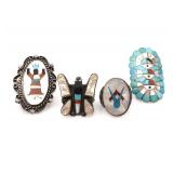 - 2606 LOT OF 4 VINTAGE ZUNI STERLING SILVER INLAY RINGS