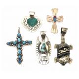 - 2617 LOT OF 4 ARMAND AMERICAN HORSE LAKOTA TRIBE NICKEL SILVER TURQUOISE PENDANTS