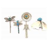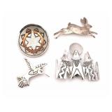 - 2620 LOT OF 4 NATIVE AMERICAN STERLING SILVER BROOCHES