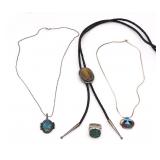 - 2621 LOT OF 4 NATIVE AMERICAN STERLING SILVER GEMSTONE JEWELRY LOT