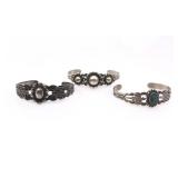 - 2604 LOT OF 3 NATIVE AMERICAN STERLING SILVER CHIP INLAY CUFFS