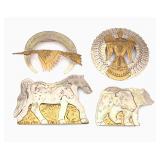 - 2601 LOT OF 4 ARMAND AMERICAN HORSE LAKOTA TRIBE NICKEL SILVER & BRASS BROOCHES