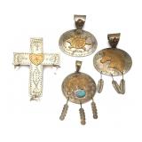 - 2625 LOT OF 4 ARMAND AMERICAN HORSE LAKOTA TRIBE NICKEL SILVER & BRASS PENDANTS