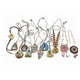 - 2634 LOT OF 12 NATIVE AMERICAN HAND PAINTED BEADED NECKLACES