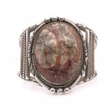- 2640 NATIVE AMERICAN SILVER JASPER CABOCHON CUFF