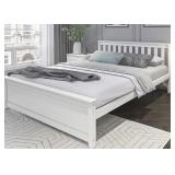 Solid Wood Queen Bed Frame, Platform Bed with Headboard, White