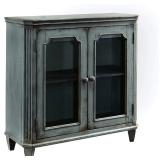 Signature Design by Ashley Mirimyn Vintage 36" 2-Door Accent Cabinet with Glass Inlay and Adjustable Shelf, Blue