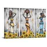 3 Pieces Black Women Wall Art Decor African American Painting Giclee Prints Black Girls Picture Canvas Artwork Framed for Bedroom Livingroom Ready to Hang 16x32inchx3pcs