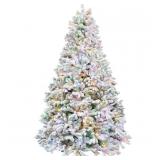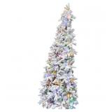 Fraser Hill Farm 6.5-Ft. Pre-Lit Half Wall Snowy Christmas Tree, Multi-Color LED Lights, FFHTA065-6SN