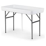 Old Cedar Outfitters Fill N Chill Folding Table for Parties or Catering Events, Open Top Cooler Table with Drain, 47.5" x 23.6" x 32.3", White/Deep