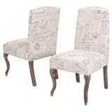 (87) Christopher Knight Home CKH Crown Top French Script Fabric Dining Chairs, 2-Pcs Set, Beige / Script