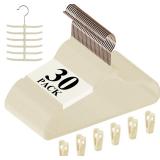 VECELO Premium Velvet Clothes Hangers Suit Heavy Duty (30 Pack)-Non Slip & Space-Saving with 6 Finger Clips & Tie Rack Excellent for Men and Women,Beige