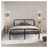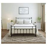 AMBEE21 Victorian Queen Metal Bed Frame with Headboard and Footboard Platform/Wrought Iron/Heavy Duty/Solid Sturdy Metal Slat/Black/No Box Spring Needed/Mattress Foundation/Under Bed Storage
