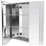 It has 2 adjustable tempered glass shelves. You can adjust the level you need. It is perfect for storing your toiletries, daily necessities. There is also a small 5x mirror on the inside of the medicine cabinet to make your makeup clearer. It made of high quality aluminum to ensure durability, better than other metal.