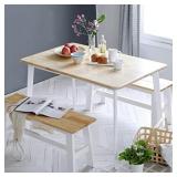 Livinia Canberra 47.2" Rectangular Wooden Dining Table/Mid Century Modern Malaysian Oak Kitchen Table (Natural-White) Table Only Roll over image to zoom in