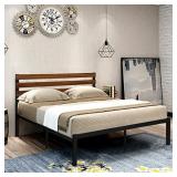- Modern design:bed frame metal platform have a wooden headboard, appearance simple and elegant. No need box spring ,upgraded structure enable the mattress stay inside of the frame, prevent mattress slipping.