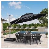 PURPLE LEAF 12 Feet Double Top Round Deluxe Patio Umbrella Offset Hanging Umbrella Outdoor Market Umbrella Garden Umbrella, Grey