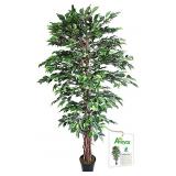 Aveyas 6ft Artificial Ficus Silk Tree (72in) with Plastic Nursery Pot, Fake Plant for Office House Farmhouse Living Room Home Decor (Indoor/Outdoor)