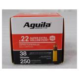 Aguila 22 Long Rifle Ammo 250 Rounds 38 Grain Copper Plated Hollow Point