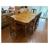 - Lot #5 - Vintage Dining Room Table w/ Two " Leaves & Six Chairs