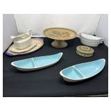 - Lot #10 - Vintage MCM Taylor Smith Dishes, Kensington Gravy Boat, Stoneware Cake Stand & More