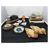 - Lot #14 - Vintage German Barometer, '55 Military Photo, Glass Piggy Bank, Wood Ducks, Stoneware, Nemadji Pottery & More