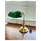- Lot #43 - Vintage Brass Bankers Lamp w/ Green Glass Shade