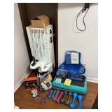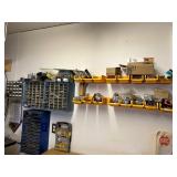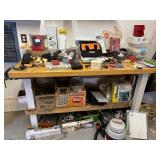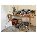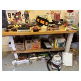 - Lot #302 - Bench Full of New & Used Tools, Hardware, Small Shop Vac.