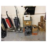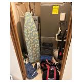 - Lot #336 - Two Scunci Steamers, Iron Boards, Mops, Brooms, Singer Vacuum, Crates & More